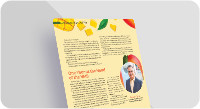 AGRICULTURE INDUSTRY Joy of Mangos coincided with the release of the latest Disney Continuation from page 68. movie, Inside Out 2, in which one of the main characters is 吀栀e primary consumers of mangos in the U.S. are Hispanics named Joy. 吀栀ey took advantage of this situation and, with and Asians. But they are increasingly followed by the Anglo Disney, created a successful advertising campaign to develop and African American segments, motivated by the trend of promotional material that was deployed in more than 2,000 retail seeking more healthful foods and the desire to be adventurous outlets in the US. by trying di昀昀erent fruits or creating simple and various recipes "With this promotion and the relaunch of our website on July using mango. 22, when National Mango Day is celebrated, we send the message Each summer, the NMB intensi昀椀es its marketing campaign, that this fruit is synonymous with joy because that is what you taking advantage of the full harvest of the fruit and the feel when you taste a mango," concluded Ojeda. supermarkets 昀椀lled with varieties that o昀昀er unique 昀氀avors and delicious textures. Summer is the ideal time to savor the joy of mangoes. Ojeda noted that the creation of this new slogan for Taste the One Year at the Head of the NMB Ramón Ojeda is an outstanding Venezuelan professional He also created his with a degree in Business Administration and an MBA from consulting firm, ROI Penn State University. In June 2023, he was appointed executive Business Strategies, to director of the National Mango Board, an organization dedicated provide outstanding to promoting and developing the U.S. mango market. solutions, innovative Previously, Ojeda served as chief operating o昀케cer of the NMB, service, and the right a position he assumed in 2021. He oversaw the organization's expertise to help business 昀椀nancial, operational, and administrative functions in this role. owners succeed in their 吀栀roughout his 30-year professional career, Ojeda has held businesses. several senior management positions, including director of Ojeda's appointment as marketing at Cargill Foods, chairman of the Florida Diversity executive director of the National Business Council, executive director of the Children's Safety Mango Board is a testament to Ramón Ojeda Village, and for ten years served as president of the Orlando his commitment and exceptional Executive Director of the Hispanic Chamber of Commerce. business management skills. National Mango Board On the Way: The Mango Joyride Tour A new marketing initiative that the National celebrate the Labor Day holiday at Florida State Mango Board will be launching this summer University Stadium for the FSU vs. Boston is the Mango JoyRide Tour. 吀栀is mango College game. joyride tour will take place with a truck 吀栀e JoyRide Tour will wrap up in Oxford, out昀椀tted as a Mango Truck, which will MS, with two days of activities on the weekend visit several cities in the southeastern U.S. of September 7 during the University of "At each stop during the tour, the idea Mississippi's Ole Miss celebration. is to interact with consumers at the point During the Mango JoyRide Tour, the mango of sale, which could be supermarkets and truck will make stops at various supermarkets, sports facilities," said Ojeda. engaging the community with fun activities. 吀栀e Mango JoyRide Tour will kick o昀昀 It will o昀昀er a variety of drinks and dishes on August 25 at the H-E-B supermarket in prepared with mangoes, allowing consumers Frisco, Texas, then at the Frisco Rough Riders to experience the fruit's versatility 昀椀rsthand. minor league baseball team's ballpark. Additionally, it will distribute merchandise On Monday, September 2, the Mango Truck related to this delicious fruit, further promoting will arrive in Tallahassee, FL, where they will the joy of mangoes. 7070 JJUULLYY//AAUUGGUUSST 2T 200224 4 AABBAASSTOTO..CCOOMM