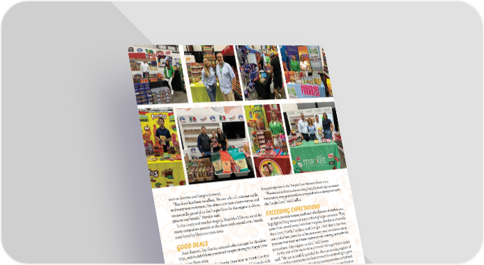 IFOOD INDUSTRY such as Jarritos and Sangria Señorial. his participation in the Purple Crow Summer Show 2024. “吀栀e show has been excellent. We saw a lot of customer tra昀케c “We started at 8:00 in the morning, happily receiving customers. and many new customers. 吀栀is drives us to have a better future, and Fortunately, very good numbers, very good sales as always here with we are really grateful to the Purple Crow for the support it always the Purple Crow,” said Cuellar. gives to our brands,” Morales said. In the candy and snacks category, Mondelez USA was one of the EXCEEDING EXPECTATIONS many companies present at the show, with several of its brands In turn, Antonio Gomez, southeast sales director of Market 5201, most loved by Mexican consumers. highlighted the presence of many of the top large customers. “吀栀ey came from several areas, both from Virginia, Maryland, obviously GOOD DEALS from here, North Carolina, and Georgia. I feel that it has been Juan Ramon, Jay, Garcia, national sales manager for Mondelez one of the best years for us because every year we notice a jump, USA, said he didn’t have a moment’s respite during the Purple Crow it means that more and more customers are coming, and with the Summer Show 2024. promotions, they support us a lot,” said Gomez. “Collaborating with the Purple Crow here in North Carolina At the end of the trade show, General Manager Rick Calabro was a pleasure. I’m in charge of Ricolino, Vero, and Coronado with said, “We are incredibly grateful for the unwavering support of Mondelez USA, and I am very happy to be here. Sales were pretty our supplier community and look forward to continuing to grow good. 吀栀at is the best incentive for those of us who come from out alongside them. A heartfelt thank you to everyone who contributed, of town to be able to sell because, at the end of the day, that is what including our vendors, clients, and employees. Your contributions we come for,” said García. were invaluable in creating an unforgettable and enjoyable event In the neighboring booth, Esteban Cuellar, national sales director that surpassed all our expectations. On behalf of all of us at the of Manzela USA, also expressed his satisfaction with the results of Purple Crow, thank you!” 3030 JJUULLYY//AAUUGGUUSST 2T 200224 4 AABBAASSTOTO..CCOOMM