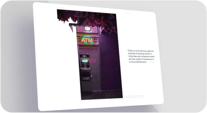 T2 Money changers T2 Money changers “Today, as more services make the business of sending money to individuals and companies instant and free, quality of experience is a critical differentiator.”— Fjord Trends 2020 ATMs might soon become relics from a bygone era, with many societies starting to go cashless. 31 32