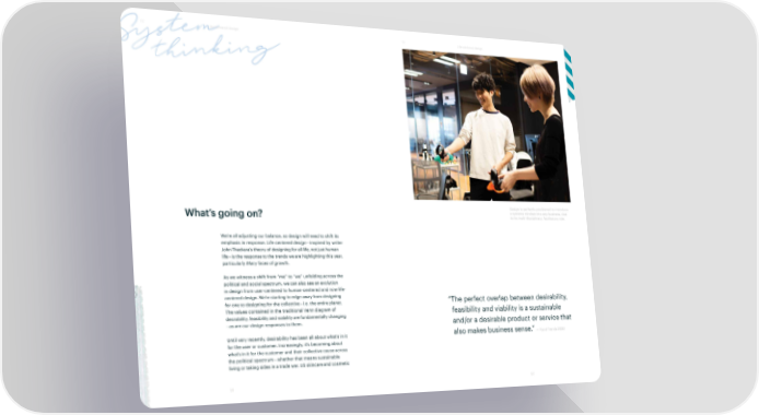 T7 Life-centered design T7 Life-centered design Design is perfectly positioned to introduce a systems mindset into any business, due What’s going on? to its multi-disciplinary, facilitatory role. We’re all adjusting our balance, so design will need to shift its emphasis in response. Life-centered design – inspired by writer John Thackara’s theory of designing for all life, not just human life – is the response to the trends we are highlighting this year, particularly Many faces of growth. As we witness a shift from “me” to “we” unfolding across the political and social spectrum, we can also see an evolution in design from user-centered to human-centered and now life- centered design. We’re starting to edge away from designing for one to designing for the collective – i.e. the entire planet. “The perfect overlap between desirability, The values contained in the traditional Venn diagram of feasibility and viability is a sustainable desirability, feasibility and viability are fundamentally changing – as are our design responses to them. and/or a desirable product or service that Until very recently, desirability has been all about what’s in it — Fjord Trends 2020 also makes business sense.” for the user or customer. Increasingly, it’s becoming about what’s in it for the customer and their collective cause across the political spectrum – whether that means sustainable living or taking sides in a trade war. US skincare and cosmetic 91 92