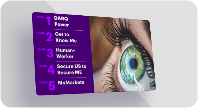 TREND 1 DARQ #TECHVISION2019 Power TREND2 Get to Know Me TREND3 Human+ Worker TREND4 Secure US to Secure ME TREND5 MyMarkets