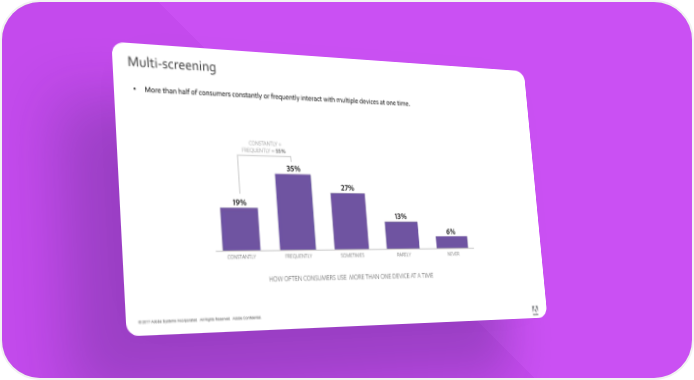 Multi-screening • More than half of consumers constantly or frequently interact with multiple devices at one time. © 2017 Adobe Systems Incorporated. All Rights Reserved. Adobe Confidential.