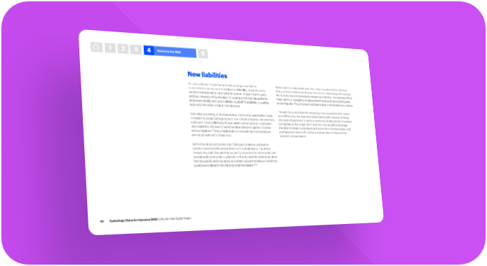1 2 3 4 Robots in the Wild 5 New liabilities As such, robotics may introduce new coverage and liability Robots will not only create new risks—they may also reduce old ones. issues in lines such as commercial general liability, product liability, Many of these devices will do jobs that are not only boring and repetitive workers’ compensation, and cyber-insurance. A report from Lloyd’s for humans, but also potentially dangerous and dirty—for example, lifting and the University of Surrey says, for example, that the risk profile for heavy items or navigating unsafe environments such as a building after employers’ liability and public liability could shift as liability is pushed an earthquake. Thus, insurers could see a drop in employee injury claims. back onto the robot product manufacturer. Though the pool of data for assessing risks associated with robots New risks, according to the researchers, include the potential for robots is small for now, the data that robots (along with internet of things in motion to cause damage to public or private property—for example, devices) will generate in years to come could also benefit insurance a delivery robot colliding with a privately-owned vehicle—and cyber- companies in the longer term. Insurers may be able to leverage risks related to the level of sensitive data robots will gather in homes this data to better understand and price risk in the workplace, and 44 and workplaces. Many traditional commercial insurance products perhaps even work with clients to reduce risks in lines such as are not yet tailored to these risks. workers’ compensation. Some insurance companies may find opportunities to underwrite specialist products for personal and commercial robots. The drone market may point the way. Pay-as-you-fly insurance for commercial and recreational drone pilots is available on hourly, monthly and annual plans from insurtechs and insurance carrier/startup partnerships, a model that 45,46 could be emulated in the robot-as-a-service space. 44 Technology Vision for Insurance 2020 | We, the Post-Digital People
