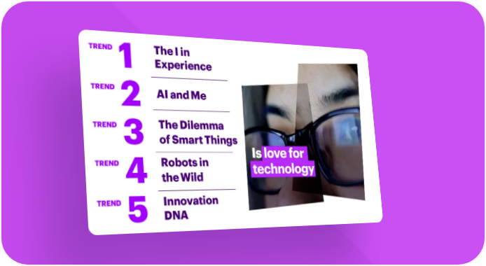 TREND TheIin Experience 1 TREND 2 AI andMe TREND TheDilemma 3 ofSmartThings TREND Robots in 4 theWild TREND Innovation 5 DNA