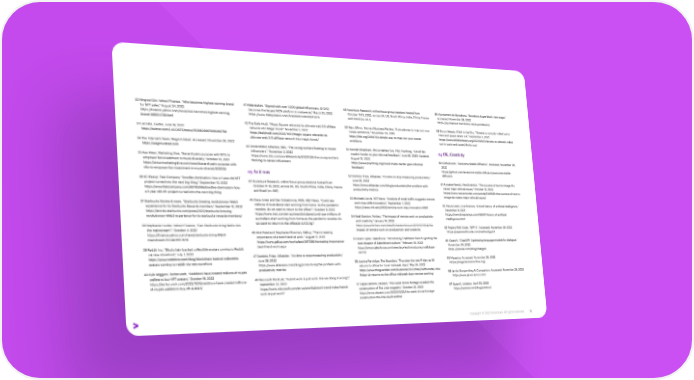 32 Ningwei Qin, Yahoo! Finance, ”Nike becomes highest-earning brand 41 Malaysiakini, “Signed with over 1,000 global influencers, GI DAO 49 Accenture Research, online focus group sessions hosted from 58 Ajuntament de Barcelona, “Barcelona Superblock: new stage,” for NFT sales,” August 24, 2022 becomes the largest MCN platform in metaverse,” March 25, 2022 October 11-13, 2022, across UK, US, South Africa, India, China, France accessed: November 28, 2022 https://finance.yahoo.com/news/nike-becomes-highest-earning- https://www.malaysiakini.com/brandedcontent/615826 and Brazil (n=~587). https://ajuntament.barcelona.cat/superilles/en/ brand-085014745.html 42 The Daily Hodl, “Magic Square rebrands its ultimate web 3.0 affiliate 50 Marc Effron, Harvard Business Review, “A simple way to map out your 59 Simon Weedy, Child in the City, “‘Streets to schools’ rolled out in 33 Lacoste, Twitter, June 14, 2022 network into Magic Boost” November 1, 2022 career ambitions,” November 30, 2018 Paris and speed limits cut,” September 1, 2022 https://twitter.com/LACOSTE/status/1536639997096480768 https://dailyhodl.com/2022/11/01/magic-square-rebrands-its- https://hbr.org/2018/11/a-simple-way-to-map-out-your-career- https://www.childinthecity.org/2021/09/01/streets-to-schools-rolled- ultimate-web-3-0-affiliate-network-into-magic-boost/ ambitions out-in-paris-and-speed-limits-cut/ 34 The Internet’s Team, Wagmi United. Accessed: November 28, 2022 https://wagmiunited.com 43 Annie Midori Atherton, BBC, “The young workers flocking to ‘career 51 Hannah Meacham, PhD & Nathan Eva, PhD, Psychreg, “Covid has 04 OK, Creativity influencers’,” November 2, 2022 made it harder to give informal feedback,” June 26, 2020; Updated 35 Asa Hiken, Marketing Dive, “Bacardi pairs purpose with NFTs to https://www.bbc.com/worklife/article/20221028-the-young-workers- August 12, 2022 60 Github.com, “Awesome Stable Diffusion,” Accessed: November 28, empower fan investment in music diversity,” October 13, 2021 flocking-to-career-influencers https://www.psychreg.org/covid-made-harder-give-informal- 2022 https://www.marketingdive.com/news/bacardi-pairs-purpose-with- feedback/ https://github.com/awesome-stable-diffusion/awesome-stable- nfts-to-empower-fan-investment-in-music-diversit/608126/ 03 As it was diffusion 52 Dominic Price, Atlassian, “It’s time to stop measuring productivity,” 36 KC Ifeanyi, Fast Company “Doodles domination: how a 1-year-old NFT 44 Accenture Research, online focus group sessions hosted from June 29, 2022 61 Annalee Newitz, NewScientist, “The success of text-to-image AIs project turned into the next big thing,” September 13, 2022 October 11-13, 2022, across UK, US, South Africa, India, China, France https://www.atlassian.com/blog/productivity/the-problem-with- raises major ethical issues,” October 12, 2022 https://www.fastcompany.com/90783396/doodles-domination-how- and Brazil (n=~587) productivity-metrics https://www.newscientist.com/article/2341920-the-success-of-text-to- a-1-year-old-nft-project-turned-into-the-next-big-thing image-ais-raises-major-ethical-issues/ 45 Ciara Jones and Dan Colasimone, MSN, ABC News, “Covid saw 53 Michaela Jarvis, MIT News, “Analysis of email traffic suggests remote 37 Starbucks Stories & news, “Starbucks brewing revolutionary Web3 millions of Australians start working from home. As the pandemic work may stifle innovation,” September 1, 2022 62 Tanya Lewis, Live Science, “A brief history of artificial intelligence,” experience for its Starbucks Rewards members,” September 12, 2022 recedes, do we want to return to the office?,” October 9, 2022 https://news.mit.edu/2022/remote-work-may-innovation-0901 December 9, 2021 https://stories.starbucks.com/press/2022/starbucks-brewing- https://www.msn.com/en-au/news/brisbane/covid-saw-millions-of- https://www.livescience.com/49007-history-of-artificial revolutionary-Web3-experience-for-its-starbucks-rewards-members/ australians-start-working-from-home-as-the-pandemic-recedes-do- 54 Neal Stanton, Forbes, “The impact of remote work on productivity -intelligence.html we-want-to-return-to-the-office/ar-AA12LXg7 and creativity,” January 14, 2022 38 Stephanie Hurder, Yahoo! Finance, “Can Starbucks bring Web3 into https://www.forbes.com/sites/forbestechcouncil/2022/01/14/the- 63 Papers With Code, “GPT-3”. Accessed: November 28, 2022 the mainstream?,” October 4, 2022 46 Alok Patel and Stephanie Plowman, Gallup, “The increasing impact-of-remote-work-on-productivity-and-creativity https://paperswithcode.com/method/gpt-3 https://finance.yahoo.com/news/starbucks-bring-Web3- importance of a best friend at work,” August 17, 2022 mainstream-155340815.html https://www.gallup.com/workplace/397058/increasing-importance- 55 Brent Hyder, Salesforce, “Introducing Trailblazer Ranch: igniting the 64 OpenAI, “ChatGPT: Optimizing language models for dialogue,” best-friend-work.aspx next chapter of Salesforce’s culture,” February 10, 2022 November 30, 2022 39 Reddit Inc, “Blockchain-backed collectible avatars coming to Reddit https://www.salesforce.com/news/stories/introducing-trailblazer- https://openai.com/blog/chatgpt/ via new storefront,” July 7, 2022 47 Dominic Price, Atlassian, “It’s time to stop measuring productivity,” ranch/ https://www.redditinc.com/blog/blockchain-backed-collectible- June 29, 2022 65 Magenta. Accessed: November 28, 2022 avatars-coming-to-reddit-via-new-storefront https://www.atlassian.com/blog/productivity/the-problem-with- 56 Joanna Partridge, The Guardian, “Thursday the new Friday as UK https://magenta.tensorflow.org/ productivity-metrics returns to office for ‘core’ midweek days,” May 24, 2022 40 Kyle Wiggers, Techcrunch, “Redditors have created millions of crypto https://www.theguardian.com/business/2022/may/24/thursday-new- 66 Jarvis: Songwriting AI Companion. Accessed: November 28, 2022 wallets to buy NFT avatars,”