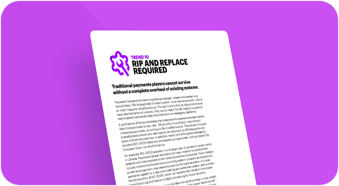 TREND 1TREND 2TREND 3TREND 4TREND 5 GEN Z RISINGUX IS THE NEW GOLDMOBILE HIT ITS GROOVEREWARDS REVOLUTIONTHE NETWORK EFFECT TREND 6TREND 7TREND 8TREND 9TREND 10 FINTECH AND BANK FUSIONAN ARMS RACE IN CODEPAYMENTS EVERYWHEREFRAUDSTERS INNOVATE TOORIP AND REPLACE REQUIRED TREND 10 RIP AND REPLACE REQUIRED Traditional payments players cannot survive without a complete overhaul of existing systems. Payments transactions have long been processed, cleared and settled over several days. This is laughable in today’s world—much less tomorrow’s—where so much happens instantaneously. The hard truth is that existing architectures have reached terminal velocity. They are no match for the industry’s quantum leap in speed, enhanced feature functionality or messaging standards. A confluence of forces is framing the imperative for payments modernization. Real-time payments is very real—39 countries have already implemented immediate payments, according to the InstaPay tracker. There is also the push to enable tokenization and new overlay services such as API integration and proxy and delivery services. In addition, nearly half of the global messaging standard ISO 20022 initiatives are happening in payments, moving beyond the European Union into North America. For example, ISO 20022 adoption is a strategic part of payments modernization in Canada. Payments Canada started a multi-year initiative to transform the systems and rules essential to the nation’s payments ecosystem. These changes include imminent enhancements to existing systems to speed up transactions, as well as longer-term improvements such as the implementation of a faster payments capability, a new core clearing and settlement system, and as noted, the introduction of ISO 20022, which will facilitate the transition from paper- based invoicing and checks to digital processing for these functions. Many banks and payment service providers are contemplating or have already begun overhauling their payments infrastructure. Ripping and replacing will give payments companies newfound technical flexibility. Today’s technology stack is monolithic. It is composed of large, inflexible systems. Reorganizations or replacements are by nature very costly and time consuming. Tomorrow’s technology stack is the exact opposite. It is composed of open and flexible systems. It is inherently agile and can reorganize to predict and meet market needs on short notice. A must for payments players today and in the future. Copyright © 2017 Accenture. All rights reserved. DRIVING THE FUTURE OF PAYMENTS 10 MEGA TRENDS | 13