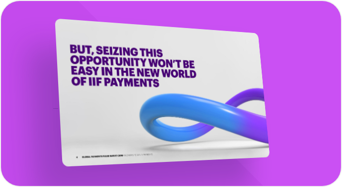 Two Ways to Win in Payments Page 3 Page 5BUT, SEIZING THIS OPPORTUNITY WON’T BE EASY IN THE NEW WORLD OF IIF PAYMENTS 4 GLOBAL PAYMENTS PULSE SURVEY 2019 TWO WAYS TO WIN IN PAYMENTS