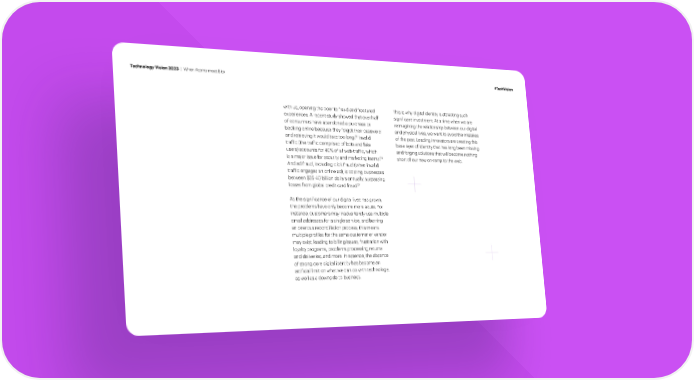 Technology Vision 2023 | When Atoms meet Bits #TechVision with us, opening the door to fraud and fractured This is why digital identity is attracting such experiences. A recent study showed that over half signi昀椀cant investment. At a time when we are of consumers have abandoned a purchase or reimagining the relationship between our digital booking online because they forgot their password and physical lives, we want to avoid the mistakes 65 Invalid and retrieving it would take too long. of the past. Leading innovators are creating this traf昀椀c (the traf昀椀c comprised of bots and fake base layer of identity that has long been missing users) accounts for 40% of all web traf昀椀c, which and forging solutions that will become nothing 66 is a major issue for security and marketing teams. short of our new on-ramp to the web. And ad fraud, including click fraud (when invalid traf昀椀c engages an online ad), is costing businesses between $35-40 billion dollars annually, surpassing 67 losses from global credit card fraud. As the signi昀椀cance of our digital lives has grown, the problems have only become more acute. For instance, customers may inadvertently use multiple email addresses for a single service, and barring an onerous reconciliation process, this means multiple pro昀椀les for the same customer or vendor may exist, leading to billing issues, frustration with loyalty programs, problems processing returns and deliveries, and more. In essence, the absence of strong core digital identity has become an arti昀椀cial limit on what we can do with technology, as well as a downside to business.