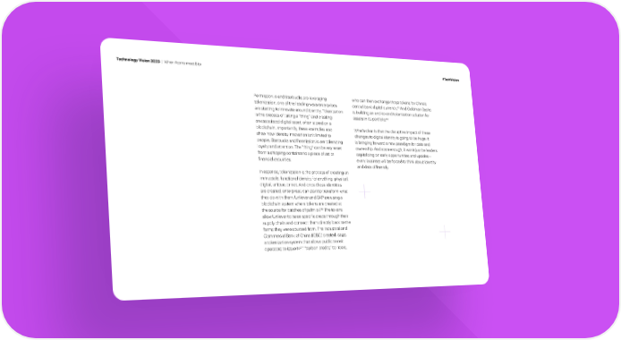 Technology Vision 2023 | When Atoms meet Bits #TechVision Permission.io and Starbucks are leveraging who can then exchange those tokens for China’s 81 tokenization, one of the leading ways enterprises central bank digital currency. And Goldman Sachs are starting to innovate around identity. Tokenization is building an end-to-end tokenization solution for 82 is the process of taking a “thing” and creating assets in its portfolio. an associated digital asset, often stored on a blockchain. Importantly, these examples also What’s clear is that the disruptive impact of these show how identity innovation isn’t limited to changes to digital identity is going to be huge: it people. Starbucks and Permission.io are tokenizing is bringing forward a new paradigm for data and loyalty and attention. The “thing” can be any asset ownership. And soon enough, it won’t just be leaders from a shipping container to a piece of art or capitalizing on early opportunities and upsides— every business will be forced to think about identity 昀椀nancial securities. and data differently. In essence, tokenization is the process of creating an immutable, functional identity for anything: physical, digital, unique, or not. And once those identities are created, enterprises can start to transform what they do with them. Unilever and SAP are using a blockchain system where tokens are created at 80 The tokens the source for batches of palm oil. allow Unilever to trace speci昀椀c crops through their supply chain and connect them directly back to the farms they were sourced from. The Industrial and Commercial Bank of China (ICBC) created Icago, a tokenization system that allows public transit operators to issue NFT “carbon credits” to riders,