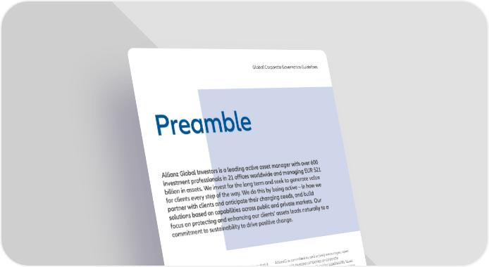 Global Corporate Governance Guidelines Preamble Allianz Global Investors is a leading active asset manager with over 600 investment professionals in 21 offices worldwide and managing EUR 521 billion in assets. We invest for the long term and seek to generate value for clients every step of the way. We do this by being active – in how we partner with clients and anticipate their changing needs, and build solutions based on capabilities across public and private markets. Our focus on protecting and enhancing our clients’ assets leads naturally to a commitment to sustainability to drive positive change. AllianzGI has implemented policies and procedures that it AllianzGI is committed to, and actively encourages, open believes are reasonably designed to ensure AllianzGI dialogue with investee companies on corporate satisfies its fiduciary obligation to vote proxies in the best governance, proxy voting and broader sustainability issues interests of its clients. Based on that fiduciary obligation, in advance of shareholder meetings. Our approach to proxy AllianzGI has adopted the Global Corporate Governance voting and company engagement is set out in AllianzGI’s Guidelines (“Guidelines”) described in this document. The Stewardship Statement, which also explains how we Guidelines provide a general framework for our proxy manage conflicts of interests that may arise in relation to voting analysis and are intended to address the most our stewardship activities. significant and frequent voting issues that arise at our investee companies’ shareholder meetings. In the past years, we continued to strengthen our Global Corporate Governance Guidelines with respect to However, the Guidelines are not rigid rules and AllianzGI’s sustainability-related issues. AllianzGI implemented a more consideration of the merits of a particular proposal may rigorous approach in cases where investors’ concerns on a cause AllianzGI to vote in a manner that deviates from the company’s Say on Climate remain unaddressed and Guidelines. AllianzGI invests time and resources evaluating included the option to vote against directors in these cases. corporate governance and proxy voting issues on a case- Going forward, for certain high-emitting companies we will by-case basis. These decisions take into account companies’ hold directors accountable if the company has not put explanations of their governance structures and practices, credible net zero targets in place. Regarding executive variances across markets in regulatory and legal remuneration we expect European large-cap companies to frameworks, best practices, and disclosure regimes. Our include ESG KPIs into their remuneration policies and would votes are cast in the long-term interest of the company and vote against pay policies if not implemented as of 2023. its investors, following analysis of the impact each issue will have on long-term investment value. 3