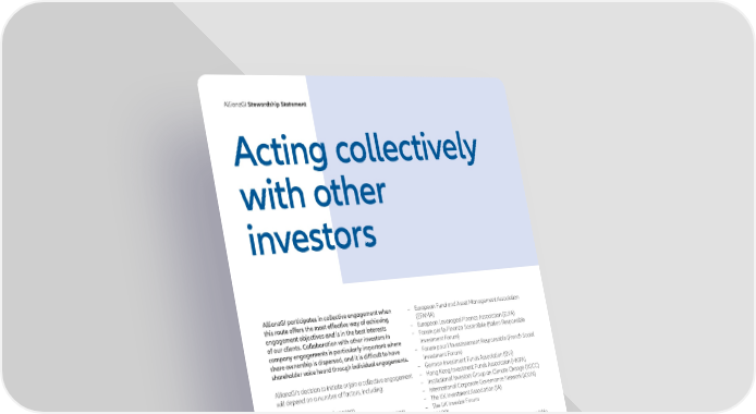 AllianzGI Stewardship Statement Acting collectively with other investors AllianzGI participates in collective engagement when – E uropean Fund and Asset Management Association this route offers the most effective way of achieving (EFAMA) engagement objectives and is in the best interests – E uropean Leveraged Finance Association (ELFA) of our clients. Collaboration with other investors in – F orum per la Finanza Sostenibile (Italian Responsible company engagements is particularly important where Investment Forum) share ownership is dispersed, and it is difficult to have – F orum pour l´Investissement Responsable (French Social shareholder voice heard through individual engagements. Investment Forum) – G erman Investment Funds Association (BVI) AllianzGI’s decision to initiate or join a collective engagement – H ong Kong Investment Funds Association (HKIFA) will depend on a number of factors, including: – I nstitutional Investors Group on Climate Change (IIGCC) – I nternational Corporate Governance Network (ICGN) – T he specific issue of concern – T he UK Investment Association (IA) – E xtent to which we can exert influence on our own – T he UK Investor Forum – T rust and alignment in views and objectives with – UN PRI other investors – A greement on strategy and potential escalation Please refer to the AllianzGI Sustainability and Stewardship – P robability of success. Report 2021 for an overview of activities and different sustainability initiatives in which we participate. AllianzGI’s collective engagement activities are undertaken in compliance with relevant statutory rules and guidelines We see it as our fiduciary duty to raise and seek to address from regulatory authorities, including on market abuse, issues that can impact the long-term sustainability and insider dealing and concert party regulations. performance of our investments through public policy engagement. In our approach we seek to speak with one AllianzGI is a member of multiple trade associations, voice across all regions and asset classes and help external investor networks and other bodies that facilitate investor stakeholders understand the rationale for our involvement engagement, and we leverage these when and as and how they can address investor concerns. For this appropriate. At any given time, AllianzGI may be actively reason, all proposed public policy engagements are involved with several investor organisations and projects reviewed following a dedicated reputational risk process that facilitate discussion, sharing of information and involving senior management as appropriate. collective engagement at an issuer or public policy level, including, but not limited to, the following: – A ssociation Francaise de la Gestion Financiere (French Asset Management Association) – C limate Action 100+ – C ouncil of Institutional Investors (CII) 12