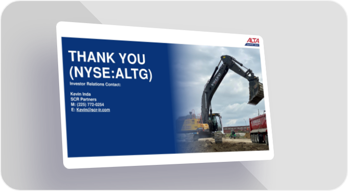 Earning Presentation Page 21 Page 23THANK YOU (NYSE:ALTG) Investor Relations Contact: Kevin Inda SCR Partners M: (225) 772-0254 E: [email protected]