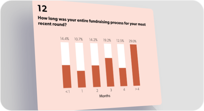 12 How long was your entire fundraising process for your most recent round? State of Startups | First Round Page 27 Page 29