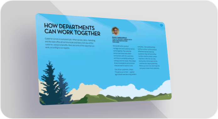 HOW DEPARTMENTS CAN WORK TOGETHER RAHUL SHIRGOPIKAR HEAD OF PRODUCT MANAGEMENT Customer service is everyone’s job. When service, sales, marketing, AND CUSTOMER SUCCESS SMS-MAGIC and the back office all communicate and have a full view of the customer, everyone benefits. Here are some of the ways that can We benefit when product company — has published their work, according to our experts. management and customer service toll-free number on their product. come together. The customer Whenever farmers have any service executives have direct questions, they call that toll-free connections with the customers, number and the contact centers and they’re constantly working on help them. After the call, they solving customer issues. We analyze send product information to the those conversations and prioritize customer as a way to proactively what we want to work on next. follow up, and in turn, this helps the One of our customers, United company convert more customers. Phosphorous Limited – a global agricultural manufacturing product 8