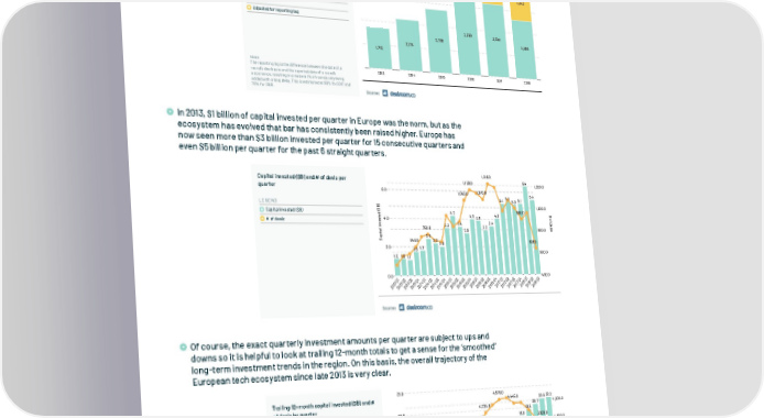 08.1 European Capital Flows For additional context on the annual number of deals in the European tech ecosystem, it is important to understand that there is a material trend in effect that means that many rounds For additional context on the annual number of deals in the European tech ecosystem, it is important to are only captured with a significant delay (see note). This ‘reporting lag’ means that the final understand there is a material trend in effect that means many rounds are only captured with a signi cant delay totals are not known until a significant time period has elapsed after the end of the year in (see note). This 'reporting lag' means that the nal totals are not known until a signi cant time period has elapsed question. As such, we have indicatively adjusted the annual totals to account for this reporting after the end of the year in question. As such, we have indicatively adjusted the annual totals to account for this lag to enable a like-for-like comparison of overall investment trends at the European level. reporting lag to enable a like-for-like comparison of overall investment trends at the European level. Number of rounds, annual, 2013-2018, adjusted for reporting lag effect 358 1,343 LEGEND # of deals Adjusted for reporting lag 3,350 3,220 2,728 2,609 2,174 1,712 Note: The reporting lag is the difference between the date of a 2013 2014 2015 2016 2017 2018 round’s disclosure and the reported date of a round’s occurrence, resulting in a material % of rounds only being added with a long delay. This is estimated at 90% for 2017 and 70% for 2018. In 2013, $1 billion of capital invested per quarter in Europe was the norm, but as the ecosystem has evolved that bar has consistently been raised higher. Europe has In 2013, $1B of capital invested per quarter in Europe was the norm, but as the ecosystem has evolved that bar has now seen more than $3 billion invested per quarter for 15 consecutive quarters and consistently been raised higher. Europe has now seen more than $3B invested per quarter for 15 consecutive even $5 billion per quarter for the past 6 straight quarters. quarters and even $5B per quarter for the past 6 straight quarters. Capital invested ($B) and # of deals per 1,215.0 1,159.0 6.4 1,200.0 quarter 6.0 1,063.0 1,073.0 5.4 5.1 5.3 5.0 5.1 LEGEND ) B 1,000.0 $ ( Capital invested ($B) 4.2 900.0 # d 4.0 e 4.0 o t 4.0 3.8 f # of deals s e d v 3.4 3.4 e n 3.3 a i 3.2 l l 759.0 800.0 s a 2.9 t pi 2.5 a C 646.0 2.2 638.0 2.0 2.0 1.6 1.7 1.2 1.2 600.0 1.1 0.0 400.0 1 2 3 4 1 2 3 4 1 2 3 4 1 2 3 4 1 2 3 4 1 2 3 Q Q Q Q Q Q Q Q Q Q Q Q Q Q Q Q Q Q Q Q Q Q Q 3 4 5 6 7 7 8 1 3 3 3 1 4 4 4 1 5 5 5 1 6 6 6 1 7 1 7 1 8 8 0 1 1 1 0 1 1 1 0 1 1 1 0 1 1 1 0 1 0 1 0 1 1 2 0 0 0 2 0 0 0 2 0 0 0 2 0 0 0 2 0 2 0 2 0 0 2 2 2 2 2 2 2 2 2 2 2 2 2 2 2 2 Of course, the exact quarterly investment amounts per quarter are subject to ups and downs so it is helpful to look at trailing 12-month totals to get a sense for the ‘smoothed’ Of course, the exact quarterly investment amounts per quarter are subject to ups and downs so it is helpful to look long-term investment trends in the region. On this basis, the overall trajectory of the at trailing 12-month totals to get a sense for the 'smoothed' long-term investment trends in the region. On this European tech ecosystem since late 2013 is very clear. basis, the overall trajectory of the European tech ecosystem since late 2013 is very clear. 25.0 Trailing 12-month capital invested ($B) and # 4,576.0 4,445.0 22.022.2 of deals by quarter 4,224.0 20.7 4,500.0 20.0 19.6 LEGEND 3,925.0 18.0 3,930.0 ) 4,000.0 B 15.9 $ Capital invested ($B) ( 14.7 14.6 14.7 # d 15.0 14.0 14.3 14.1 3,496.0 e o t 13.1 f # of deals s e 3,500.0 d v 11.9 e n a i l l s a 10.2 t 10.0 pi a 8.3 8.6 C 7.1 3,000.0 5.2 5.8 5.0 2,500.0 0.0 2,000.0 4 1 2 3 4 1 2 3 4 1 2 3 4 1 2 3 4 1 2 3 Q Q Q Q Q Q Q Q Q Q Q Q Q Q Q Q Q Q Q Q 4 5 6 7 7 8 3 1 4 4 4 1 5 5 5 1 6 6 6 1 7 1 7 1 8 8 1 0 1 1 1 0 1 1 1 0 1 1 1 0 1 0 1 0 1 1 0 2 0 0 0 2 0 0 0 2 0 0 0 2 0 2 0 2 0 0 2 2 2 2 2 2 2 2 2 2 2 2 2 2 104 In Partnership with & www.thestateofeuropeantech.com