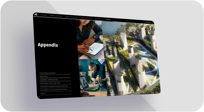FY22 IMPACT REPORT OVERVIEW ENERGY & MATERIALS HEALTH & RESILIENCE WORK & PROSPERITY GOVERNANCE APPENDIX 71 Overview AWAITING TEXT Appendix A message from our President and CEO FY22 highlights Our company Impact strategy assessments Our impact strategy Data summary Philanthropy Sustainability-enabling solutions United Nations Global Compact index United Nations Sustainable Development Goals index Sustainability Accounting Standards Board index Endnotes Image courtesy of Kalyani Group
