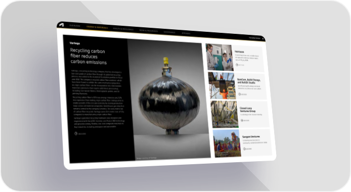 OVERVIEW ENERGY & MATERIALS HEALTH & RESILIENCE WORK & PROSPERITY GOVERNANCE APPENDIX FY22 IMPACT REPORT 24 Vartega Heirloom is investing in low-cost, scalable direct Recycling carbon air capture to remove 1 billion metric fiber reduces tons of CO₂ by 2035. carbon emissions Learn more Vartega, a recycling technology company that has developed a low-cost grade of carbon fiber through its patented recycling BamCore, Build Change, process, was added to the Autodesk Foundation portfolio in fiscal and BuildX Studio year 2022. The company’s recycled carbon fiber solutions—which have been found to exhibit the same mechanical properties are influencing the design and build as virgin carbon fiber—can be incorporated into intermediate industries to achieve net-zero carbon. materials (products that require additional processing), including non-woven fabrics, thermoplastic pellets, and 3D Learn more printing filaments. Recycling carbon fiber is 95% less energy-intensive and 50% less expensive than making virgin carbon fiber. Vartega aims to enable growth of the circular economy by closing production loops across all material composites. Greenhouse gas reduction Closed Loop remains central to the company’s metrics. For every metric ton Ventures Group of carbon fiber recycled, Vartega saves 13.4 metric tons of CO₂ compared to manufacturing virgin carbon fiber. is ushering in the circular economy. Vartega’s patented recycling hardware was designed and engineered with AutoCAD, Inventor, and Fusion 360 technology Learn more and provides strong, flexible, low-cost composite materials to Image courtesy of Closed key industries, including aerospace and automobile. Loop Partners/AMP Robotics Learn more Sangam Ventures is drawing new investors to community-centered solutions in India. Learn more Image courtesy of Image courtesy of Vartega Sangam Ventures