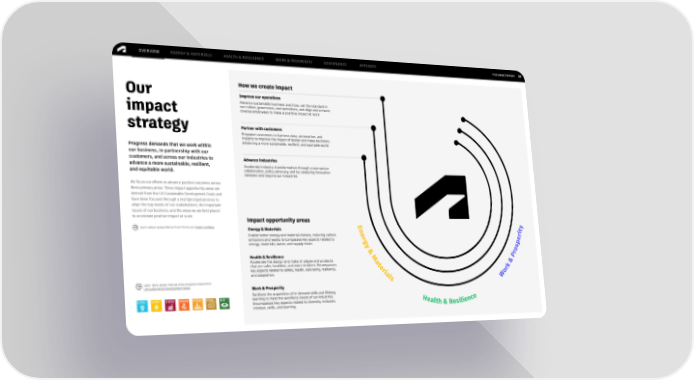 FY22 IMPACT REPORT OVERVIEW ENERGY & MATERIALS HEALTH & RESILIENCE WORK & PROSPERITY GOVERNANCE APPENDIX 07 How we create impact Our Improve our operations Advance sustainable business practices, set the standard in our culture, governance, and operations, and align and activate impact diverse employees to make a positive impact at work strategy Partner with customers Empower customers to harness data, automation, and insights to improve the impact of design and make decisions– Progress demands that we work within advancing a more sustainable, resilient, and equitable world our business, in partnership with our customers, and across our industries to Advance industries advance a more sustainable, resilient, Accelerate industry transformation through cross-sector and equitable world. collaboration, policy advocacy, and by catalyzing innovation between and beyond our industries We focus our efforts to advance positive outcomes across three primary areas. These impact opportunity areas are derived from the UN Sustainable Development Goals and have been focused through a multipronged process to align the top needs of our stakeholders, the important issues of our business, and the areas we arebestplaced to accelerate positive impact at scale. Impact opportunity areas Learn about assessments that inform our impact strategy. Energy & Materials Ene ity Enable better energy and material choices, reducing carbon r r emissions and waste. Encompasses key aspects related to g e energy, materials, waste, and supply chain. y sp Health & Resilience &M Pro Accelerate the design and make of places and products a that are safer, healthier, and more resilient. Encompasses te & key aspects related to safety, health, well-being, resilience, ri rk and adaptation. als o Learn more about how we drive progress toward the W UN Sustainable Development Goals. Work & Prosperity Facilitate the acquisition of in-demand skills and lifelong learning to meet the workforce needs of our industries. Encompasses key aspects related to diversity, inclusion, Heal ence mindset, skills, and learning. th & esili R