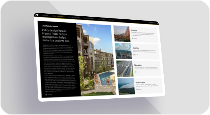 OVERVIEW ENERGY & MATERIALS HEALTH & RESILIENCE WORK & PROSPERITY GOVERNANCE APPENDIX FY22 IMPACT REPORT 17 Lake|Flato Architects Matta Sur Chile's Matta Sur Complex links a 19th-century school building Every design has an to a new medical facility, bringing the past into the future impact. Total carbon through adaptive reuse. Learn more Image courtesy of luis vidal management helps +architects make it a positive one. Lake|Flato Architects, a leader in sustainable architecture Fjord City design in the United States, has received 13 AIA COTE awards for Fjord City brings unique design to sustainable development sustainable design excellence—more than any other architect. in Norway and sets a new standard for urban regeneration. The firm is driven by the goal of total carbon management and making the best decisions possible for the design itself and impact on the climate. Learn more To manage operational carbon, Lake|Flato uses Autodesk Insight Image courtesy of Oscar software for high-performance building design. Insight enables Daniel Rangel/Unsplash Lake|Flato to quickly, easily, and accurately model the impacts of design decisions on the overall energy consumption of each project. Tally—the first lifecycle assessment app to calculate the environmental impacts of building material selections directly in SK ecoplant a Revit model—is another key tool in Lake|Flato’s arsenal for The Paju fuel cell plant in South Korea offers green, efficient measuring and managing embodied carbon. The list of materials power to a rural area and serves as a model for future projects. and quantities generated in Tally imports directly into the EC3 tool, fostering a more efficient workflow that optimizes both Learn more tools’ capabilities. Located in the heart of downtown Austin, Lake|Flato’s recent Image courtesy of SK ecoplant Hotel Magdalena project is the first mass timber boutique hotel constructed in North America and demonstrates the total carbon benefits of this approach compared to more conventional construction. According to Lake|Flato, “Results indicate that when including biogenic carbon, switching to a mass timber structural afterFIT Japan system can provide a tremendous carbon reduction, ranging In Japan, solar power innovator afterFIT is realizing from 38% to 58% depending on how much mass timber is replacing low-carbon goals using drones, 3D design, and simulation. concrete or steel. When biogenic is not included, the carbon reduction ranges from 7% to 17%.” Learn more Learn more Image courtesy of Casey Dunn Image courtesy of afterFIT
