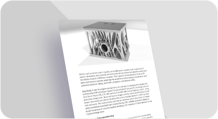 Metrics such as person‑hours traveled, person‑kilometers traveled, multi‑modal level of service calculations, and economic and environmental assessments help planners understand the relative impacts of different scenarios. This supports the development of more effi‑ cient road network systems, which has the potential to reduce energy consumption, local pollutant emissions, delays, and traffic congestion, and improve safety. Case Study: A new Norwegian road authority with an eye on emerging technologies and sophisticated BIM techniques tapped Norconsult and AF Gruppen for the design and con‑ struction of Route E39, a 15‑mile stretch of the 680‑mile Coastal Highway project. Using ® generative design tools, Revit and Dynamo scripts, and the cloud‑based Autodesk Forge viewer, Norconsult was able to visualize data across multiple platforms, reducing mate‑ rials and waste. The road authority attached an ambitious goal to the project: to reduce carbon emissions associated with construction by 20%. Detailed parametric design re‑ duced the amount of concrete needed, enabling a 15% reduction of CO2 emissions for the Trysfjord bridge alone. Focus area: Green manufacturing Approximately 19% of global greenhouse gas emissions are from the manufacturing 6 industry , and by 2050 the growth in population and associated demand for consumer 7 8 goods will require at least twice the energy and materials currently used. These impacts and trends, combined with customer demand for more environmentally friendly products as well as new environmental regulations, are driving manufacturers to commit to sus‑ tainable outcomes in their work. ® The Autodesk Product Design & Manufacturing Collection and our cloud platform support sustainable design in a broad range of areas. Generative design capabilities in Fusion 360 can inform part consolidation and material use reductions. Enhanced 3D Adaptive and Pocket toolpaths in Fusion 360 Manufacture workspace reduce machining time and energy use. The Arrange tool, a simplified version of Nesting added to Fusion 360 in 2020, helps 6 http://iea.org 7 Ari Kahan, “EIA Projects Nearly 50% Increase in World Energy Usage by 2050, Led by Growth in Asia,” 24 Sep. 2019, http://eia.gov 8 Julian M. Allwood, Michael F. Ashby a, Timothy G. Gutowski b, Ernst Worrell, “Material Efficiency: A White Paper,” Jan. 2011, http://sciencedirect.com Autodesk Sustainability Financing Framework | October 2021 9