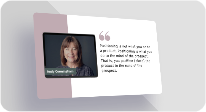 Positioning is not what you do to a product. Positioning is what you do to the mind of the prospect. That is, you position (place) the product in the mind of the prospect. Andy Cunningham