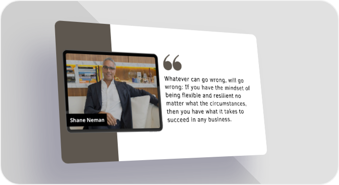 Whatever can go wrong, will go wrong: If you have the mindset of being flexible and resilient no matter what the circumstances, then you have what it takes to Shane Neman succeed in any business.