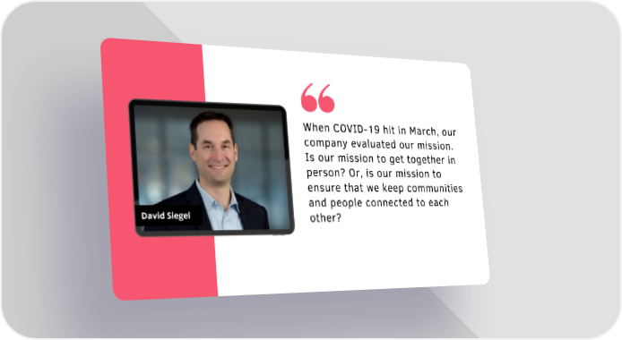 When COVID-19 hit in March, our company evaluated our mission. Is our mission to get together in person? Or, is our mission to ensure that we keep communities and people connected to each David Siegel other?