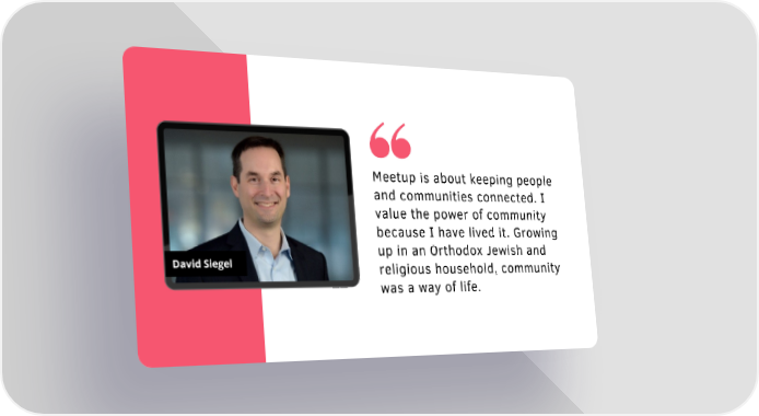 Meetup is about keeping people and communities connected. I value the power of community because I have lived it. Growing up in an Orthodox Jewish and David Siegel religious household, community was a way of life.