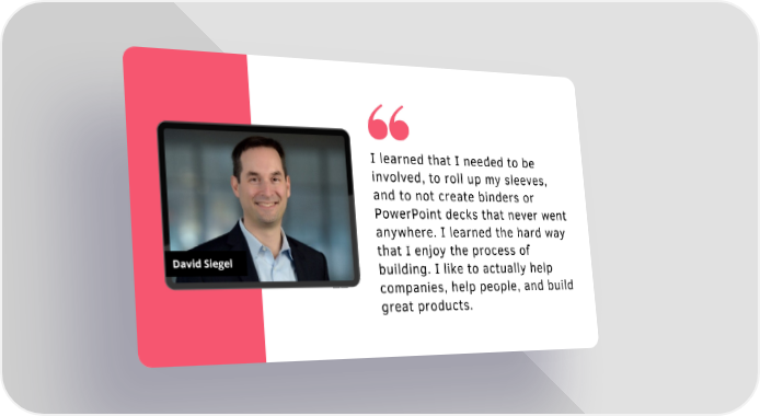 I learned that I needed to be involved, to roll up my sleeves, and to not create binders or PowerPoint decks that never went anywhere. I learned the hard way that I enjoy the process of David Siegel building. I like to actually help companies, help people, and build great products.