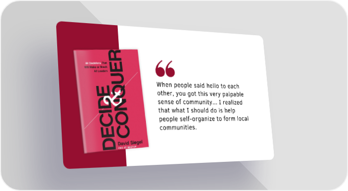 When people said hello to each other, you got this very palpable sense of community... I realized that what I should do is help people self-organize to form local communities.
