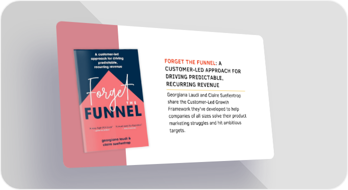 FORGET THE FUNNEL: A CUSTOMER-LED APPROACH FOR DRIVING PREDICTABLE, RECURRING REVENUE Georgiana Laudi and Claire Suellentrop share the Customer-Led Growth Framework they've developed to help companies of all sizes solve their product marketing struggles and hit ambitious targets.