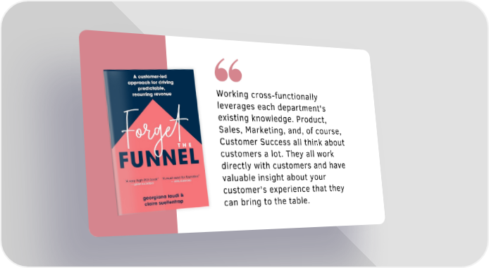 Working cross-functionally leverages each department's existing knowledge. Product, Sales, Marketing, and, of course, Customer Success all think about customers a lot. They all work directly with customers and have valuable insight about your customer's experience that they can bring to the table.