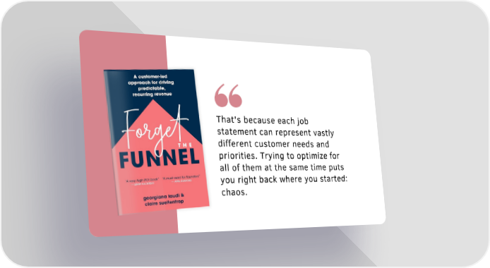 Forget the Funnel Page 14 Page 16That's because each job statement can represent vastly different customer needs and priorities. Trying to optimize for all of them at the same time puts you right back where you started: chaos.
