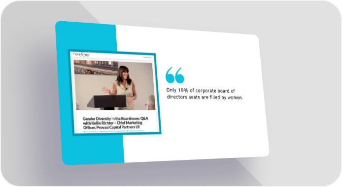 Only 19% of corporate board of directors seats are filled by women. Kellie Richter on Forefront Page 1 Page 3