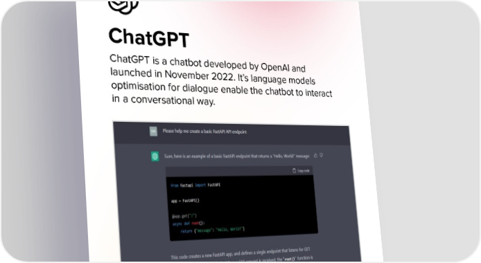 ChatGPT ChatGPT is a chatbot developed by OpenAI and launched in November 2022. It’s language models optimisation for dialogue enable the chatbot to interact in a conversational way.