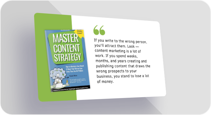 If you write to the wrong person, you'll attract them. Look — content marketing is a lot of work. If you spend weeks, months, and years creating and publishing content that draws the wrong prospects to your business, you stand to lose a lot of money.