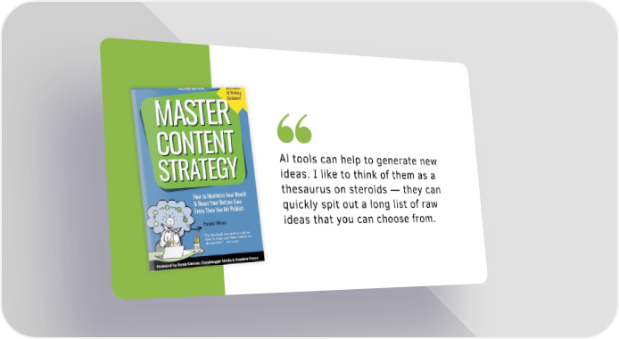 Master Content Strategy Page 5 Page 7Al tools can help to generate new ideas. I like to think of them as a thesaurus on steroids — they can quickly spit out a long list of raw ideas that you can choose from.