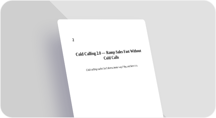 2 Cold Calling 2.0 — Ramp Sales Fast Without Cold Calls Cold calling sucks! Isn’t there a better way? Yep, and here it is.