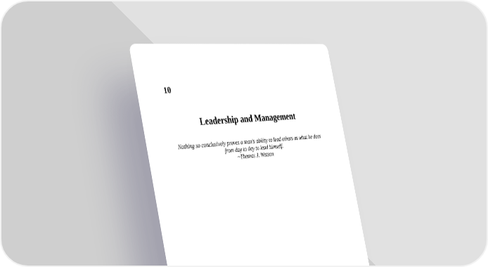 10 Leadership and Management Nothing so conclusively proves a man's ability to lead others as what he does from day to day to lead himself. ~Thomas J. Watson