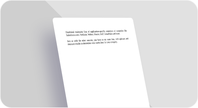 DataSalad maintains lists of application-specific customers of companies like Salesforce.com, NetSuite, Webex, Oracle, SAP, GreatPlains and more. Just as with the other sources, you have to try some lists, A/B split-test and measure results to determine what works best for your company.
