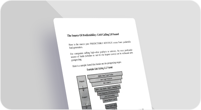 The Source Of Predictability: Cold Calling 2.0 Funnel Here is the source your PREDICTABLE REVENUE comes from: predictable lead generation. For companies selling high-value products or services, the most predictable source of leads (whether or not it’s the largest source) can be outbound sales prospecting. Here is a sample funnel that breaks out the prospecting stages: As you can see, if you experiment with your process, people and activities to find how to generate a predictable flow of new qualified opportunities, and have a consistent sales closing rate, you can begin to generate highly predictable revenue and proactive growth. Revenue Predictability = The Funnel + Average Deal Size + Time In addition to these activities and results funnel, you also have to know how long things take in order to have more predictability.