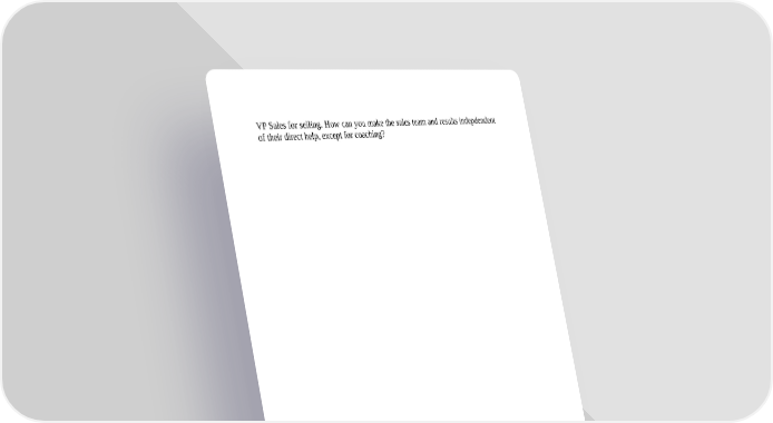 VP Sales for selling. How can you make the sales team and results indepdendent of their direct help, except for coaching?