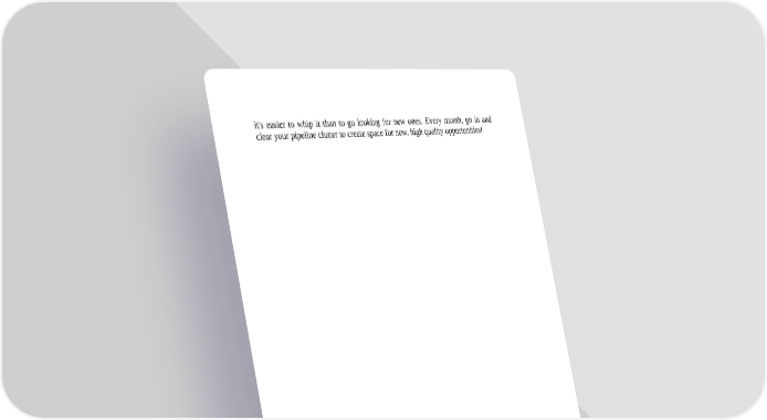 it's easier to whip it than to go looking for new ones. Every month, go in and clear your pipeline clutter to create space for new, high quality opportunities!