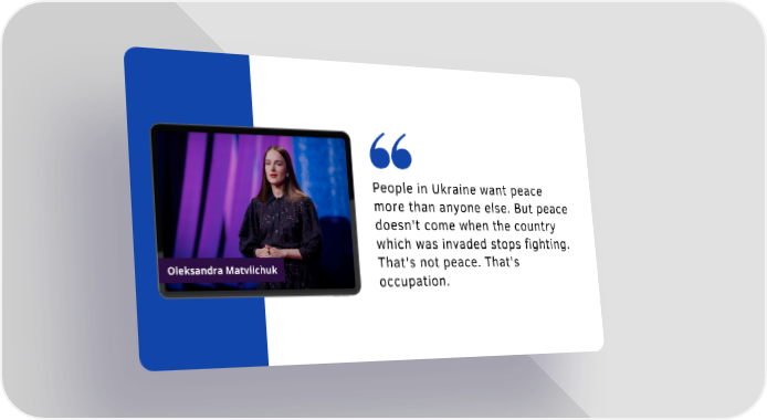 People in Ukraine want peace more than anyone else. But peace doesn't come when the country which was invaded stops fighting. That's not peace. That's Oleksandra Matviichuk occupation.