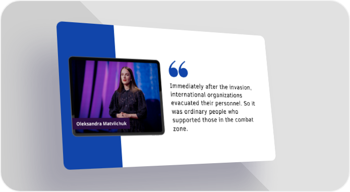 Immediately after the invasion, international organizations evacuated their personnel. So it was ordinary people who supported those in the combat Oleksandra Matviichuk zone.