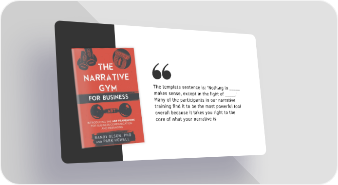 The template sentence is: 'Nothing in _____ makes sense, except in the light of _____.' Many of the participants in our narrative training find it to be the most powerful tool overall because it takes you right to the core of what your narrative is.
