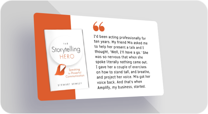 I'd been acting professionally for ten years. My friend Mia asked me to help her present a talk and I thought, 'Well, I'll have a go.' She was so nervous that when she spoke literally nothing came out. I gave her a couple of exercises on how to stand tall, and breathe, and project her voice. Mia got her voice back. And that's when Amplify, my business, started.