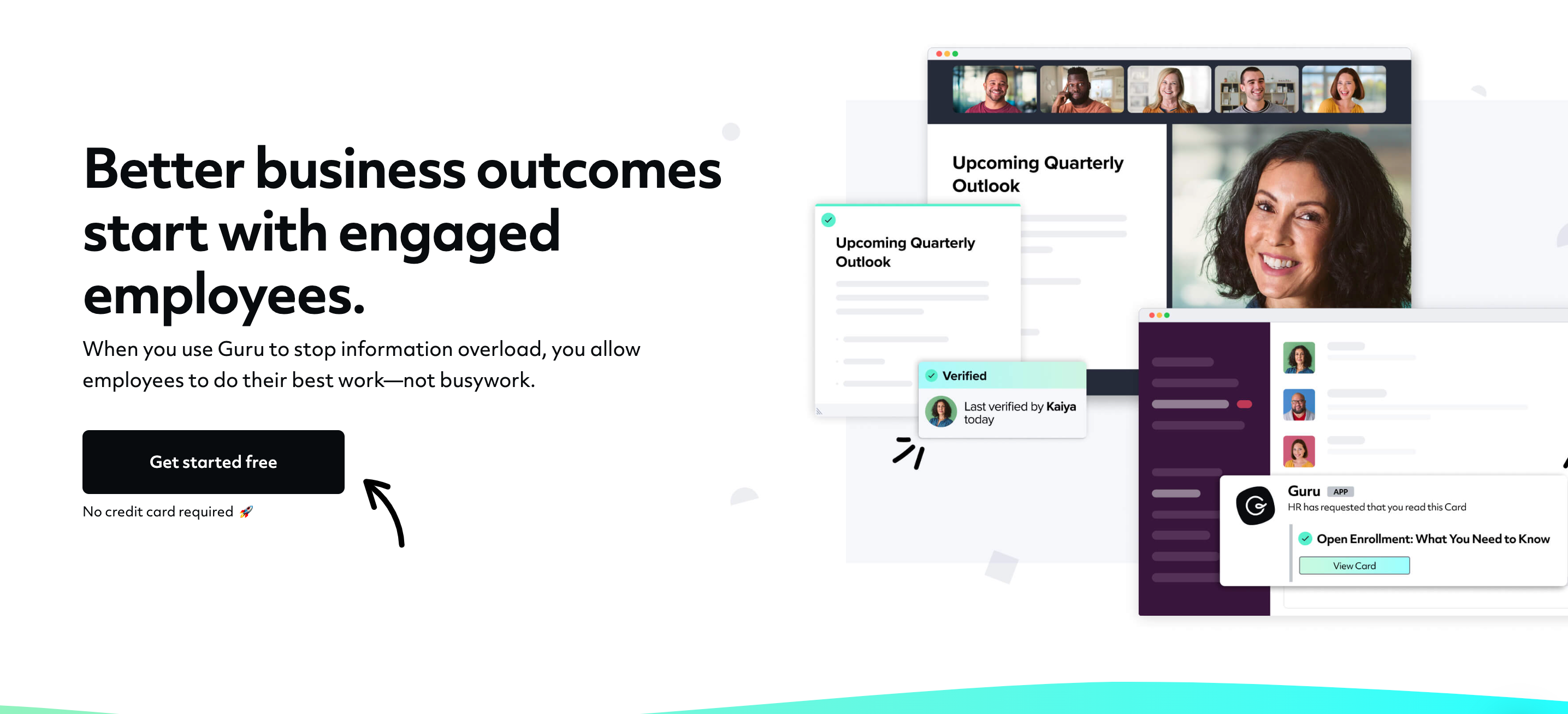Guru is a company wiki that integrates with your existing workflow, such as Slack and Teams. It uses knowledge management to keep your customer-facing teams up to date with knowledge that is accessible in every application that you use. The platform offers unified support knowledge for your sales team, creates personalised playbooks and makes predictive content suggestions and measurements that you can use.