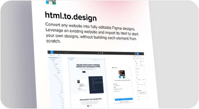html.to.design Convert any website into fully editable Figma designs. Leverage an existing website and import its html to start your own designs, without building each element from scratch.