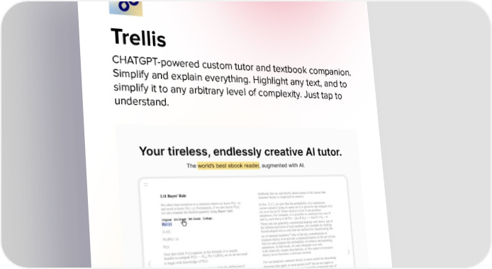 Trellis CHATGPT-powered custom tutor and textbook companion. Simplify and explain everything. Highlight any text, and to simplify it to any arbitrary level of complexity. Just tap to understand.